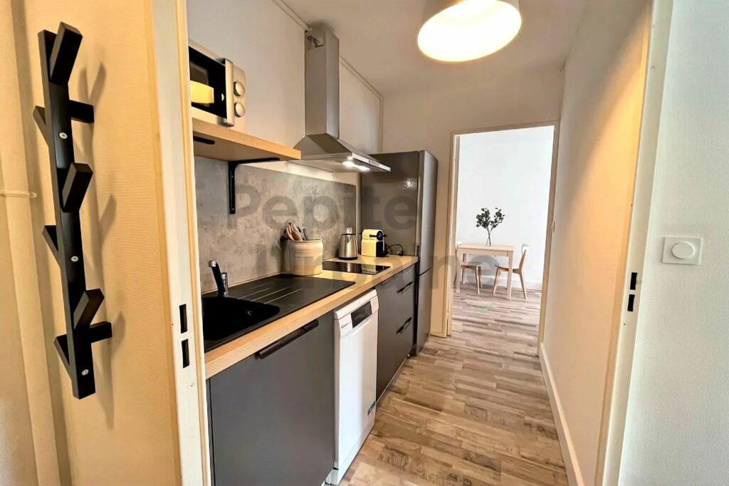 Proche des transports et des commerces. Cet appartement se compose d’une pièce de vie lumineuse, une cuisine toute équipée refaite à neuf (lave-vaisselle, four, micro-ondes, etc…) – salle d’eau avec lave-linge et WC. Une chambre avec grand placard.